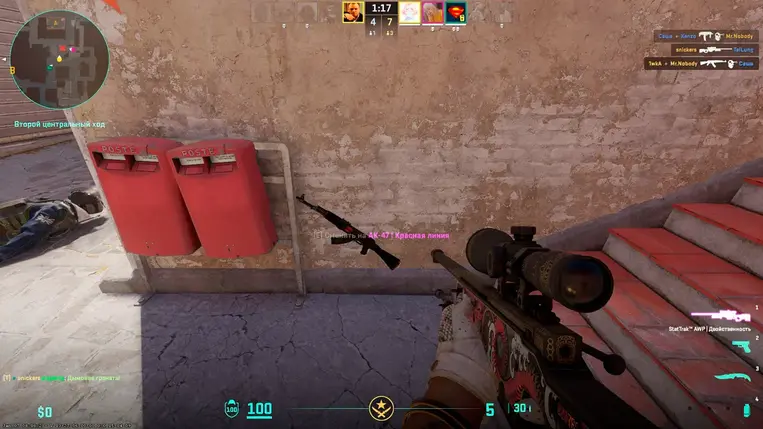 - Дроп оружия и скины — вы получаете предметы после матчей и доступ к эксклюзивным коллекциям. Например, можно выпасть на ту же AK-47 Redline.