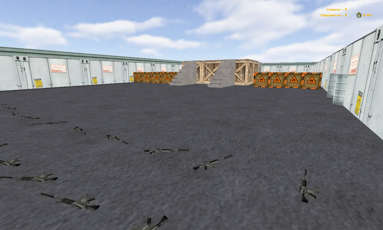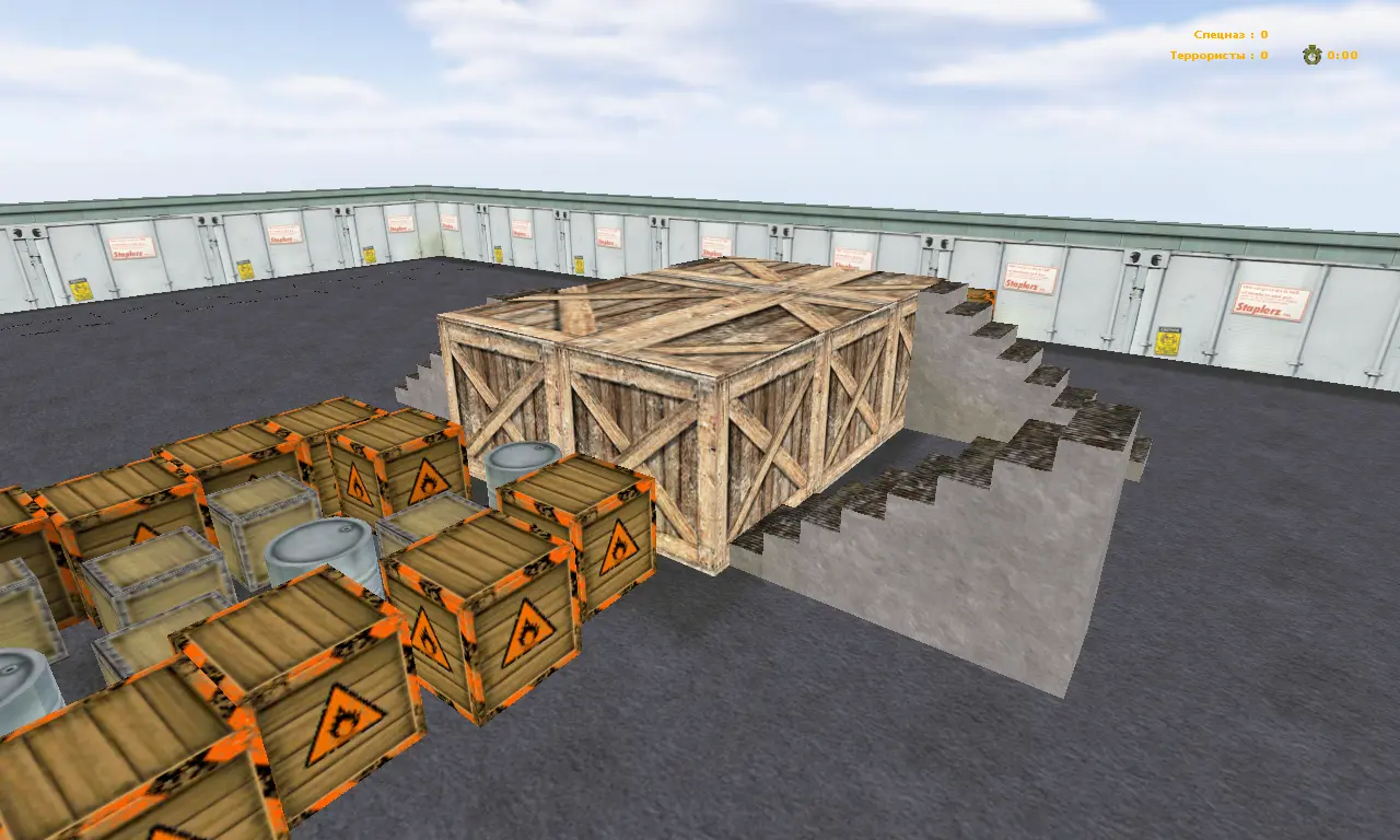 Карта aim_arena для CS 1.6 очень простая и в тоже время динамичная локация с несколькими объектами по центру карты. Разработчик добавил по середине арены простую конструкцию которая разделяет пространство между командами, но в то же время перестрелки начинаются практически моментально.
