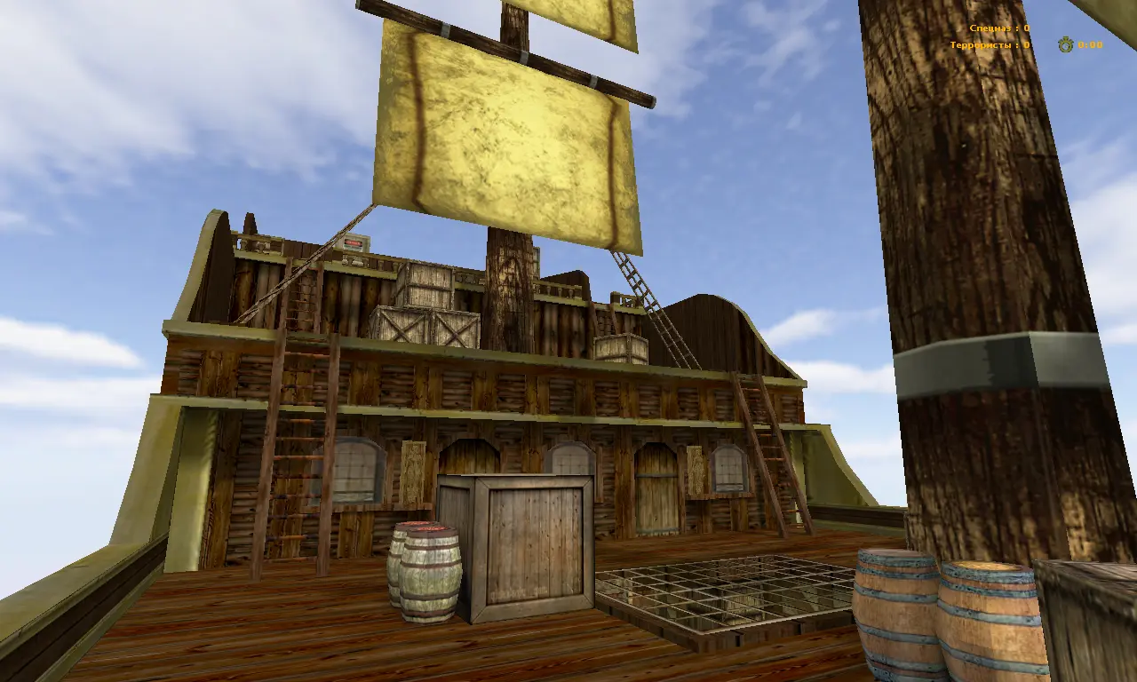 Карта awp_pirateship для CS 1.6 это прекрасно перенесенная идея пиратского корабля которые вы привыкли наблюдать в фильмах, автор постарался и проработал все нюансы которые присуще таким суднам, все детали которые символизирует "пиратство" поразительно точно воссозданы и шикарно передают атмосферу тех времен.